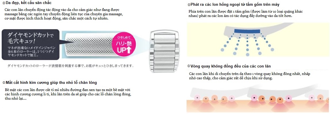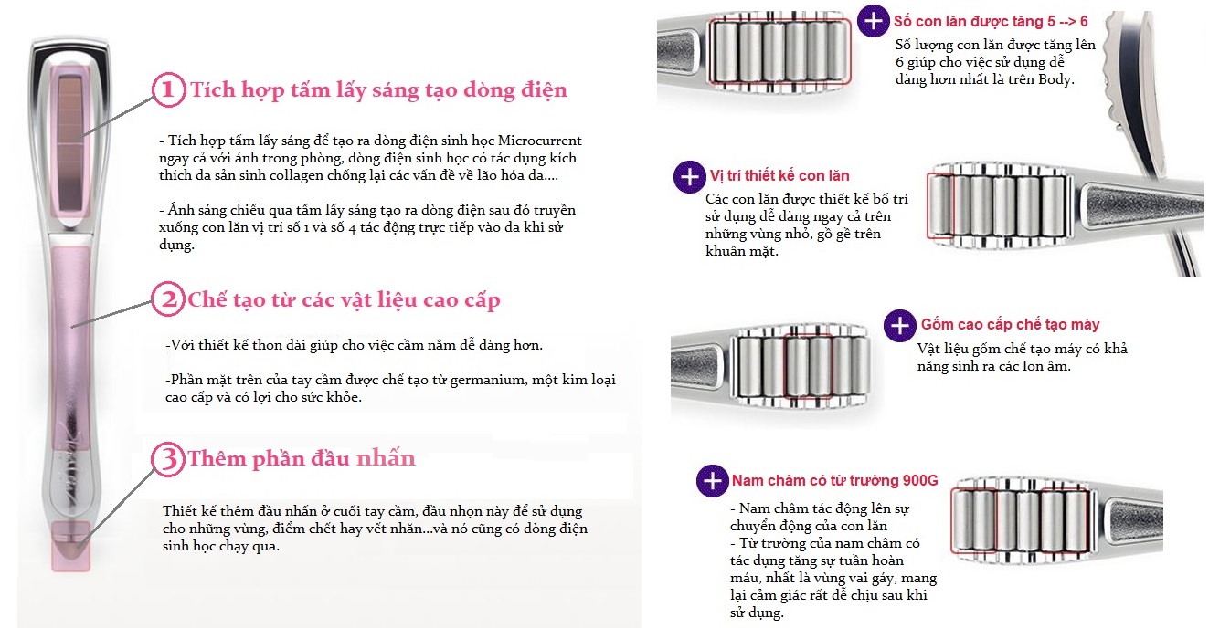 + Dạng thiết kế con lăn di chuyển tác động massage giúp da đẹp lên, kết cấu da săn chắc, khỏe mạnh