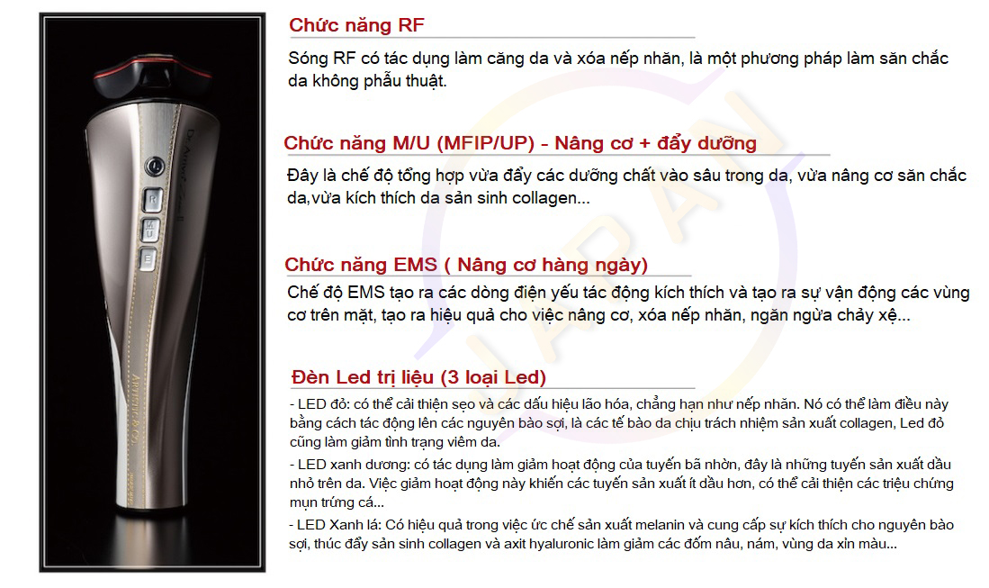 Ở trên Dr Arrivo Zeus II là công nghệ 9MFIP ( 9 cực trên mặt máy) nó có tác dụng làm khuếch đại độ hiệu quả của việc đẩy dưỡng - nâng cơ - kích thích sản sinh collagen.