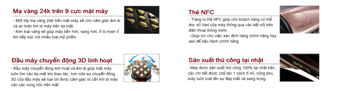 Đóng hộp sang trọng như hình, mỗi máy được tặng kèm 1 chai Golden Beauty The Serum 40ml từ chính hãng.