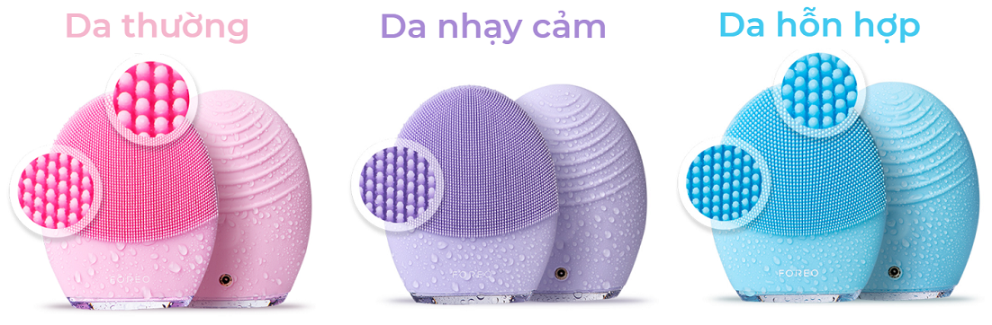 4. Phù hợp cho từng loại da: Máy Luna 3 được hãng ưu ái thiết kế các dạng sợi Silicon khác nhau để phù hợp với từng loại da của mỗi người:
