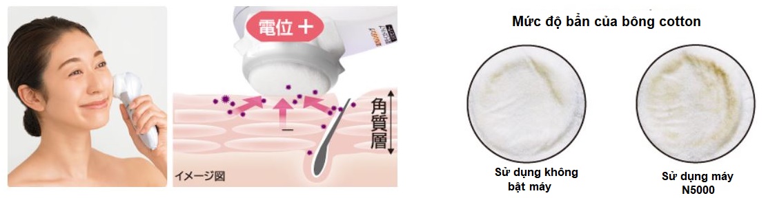 Làm sạch da là bước đầu tiên cũng là bước quan trọng nhất trong chu trình chăm sóc da mỗi ngày của chị em, thông thường chúng ta chỉ rửa mặt bằng tay và sữa rửa mặt, như vậy chủ yếu chỉ làm sạch được bề mặt bên ngoài da, còn các chất bẩn sâu trong lỗ chân lông thì vẫn nằm im đó, gây nên các vấn đề về lỗ chân lông, mụn...Với bước làm sạch sâu của máy Hitachi hada Crie N5000 sẽ có tác dụng hút hết các chất bẩn còn lại trong lỗ chân lông ra ngoài, giúp cho làm da sạch thật sự từ trong ra ngoài.