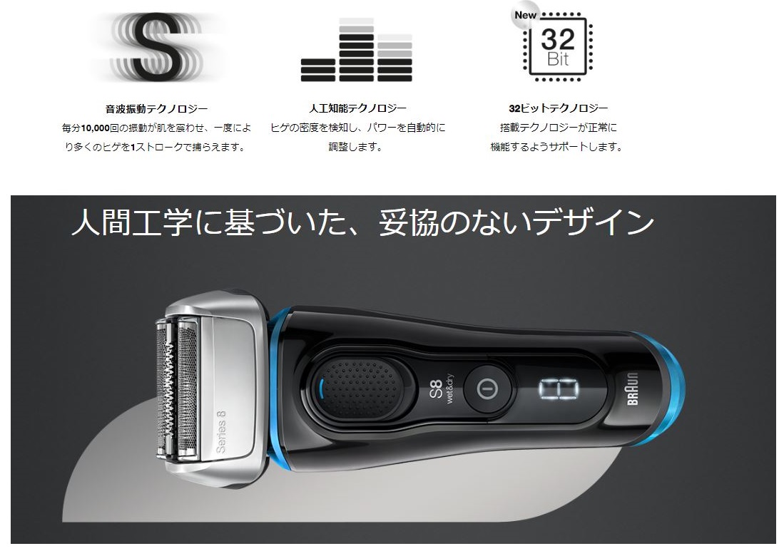 - Công nghệ trí tuệ nhân tạo cũng đã được trang bị trên Braun Series 8, công nghệ AI này phát hiện mật độ râu sau đó truyền dữ liệu giúp máy tự động điều chỉnh sức mạnh rung của lưỡi cạo phù hợp.