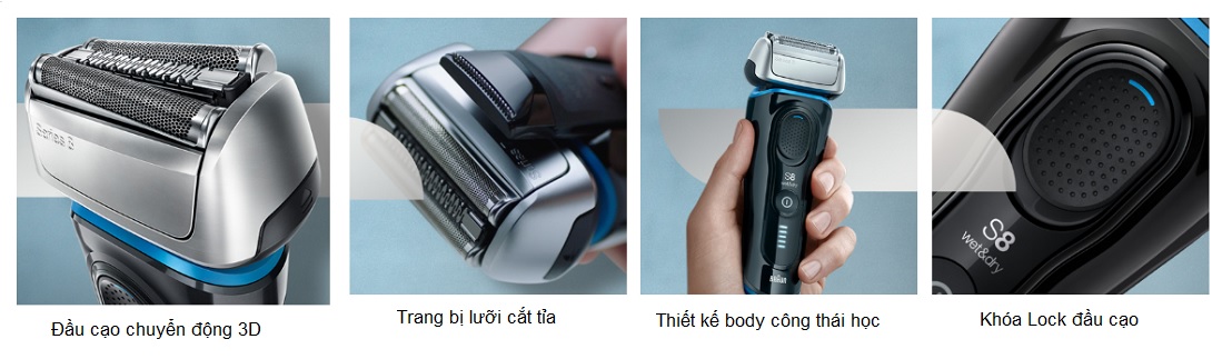 2. Thiết kế Body, lưỡi cạo của máy cạo râu Braun Series 8: