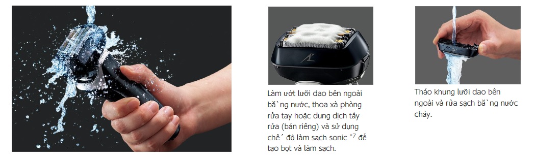 - Thiết kế chống nước tiêu chuẩn IPX7, có thể rửa toàn bộ thân máy bằng nước để dễ dàng về sinh, có thể sử dụng với xà phòng, bọt cạu râu...