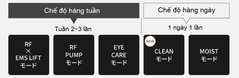 - Các chức năng làm sạch và đẩy dưỡng sử dụng hàng ngày, 3 chức năng còn lại sử dụng 2-3 lần/tuần.