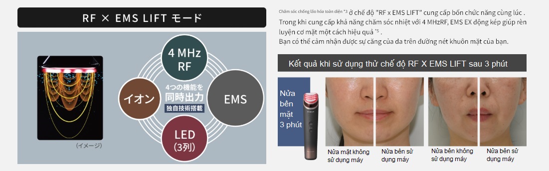 1. Chế độ RF x EMS LIFT ( chế độ nâng cơ):