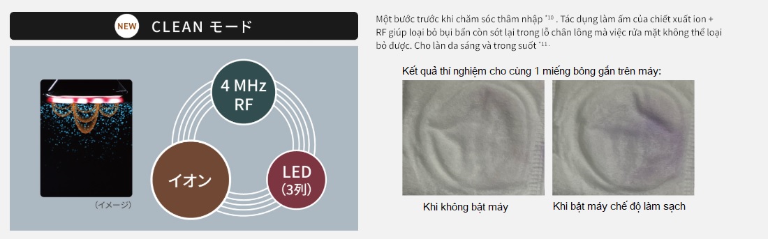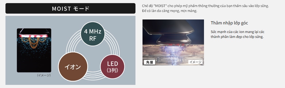 Chế độ này là sự kết hợp của các công nghệ: Sóng RF 4Mhz + Sóng nâng cơ EMS tác động kép + Công nghệ ION + Đèn led đỏ