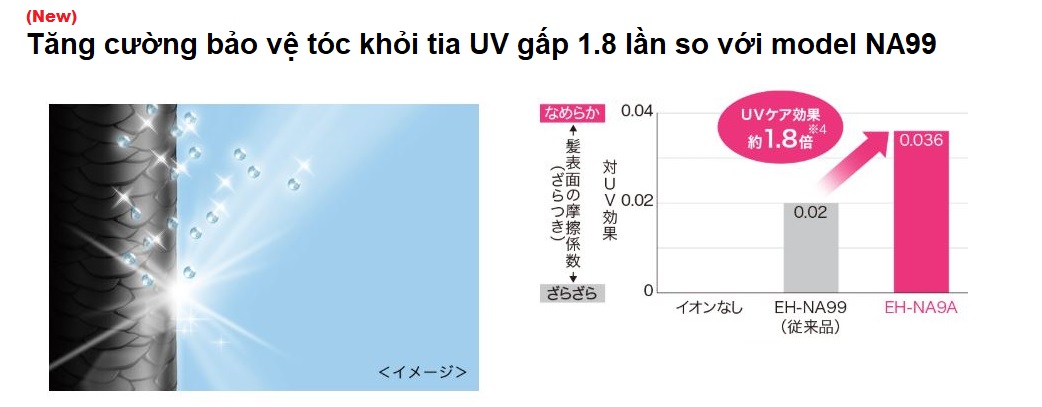 - Nhìn trên sơ đồ so sánh ảnh trên ( hình phía tay phải) các chỉ số kết quả khảo sát việc chăm sóc tóc của model NA9A đều vượt trội so với model đàn anh NA99 (ước tính hiệu quả vượt trội hơn khoảng 85%).