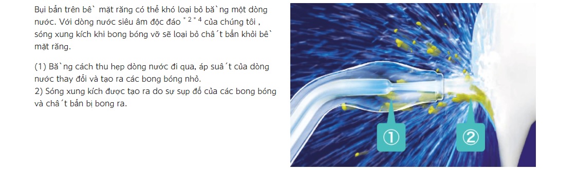 2. Loại bỏ các chất bẩn trên bề mặt răng bằng công nghệ dòng nước siêu âm: