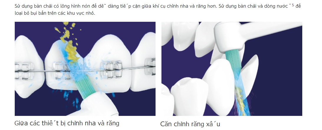 3. Loại bỏ các chất bẩn cứng đầu giữa các răng mọc lệch hay xung quanh các dụng cụ chỉnh nha: