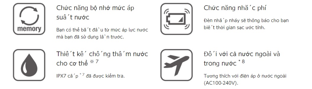 Thông số về áp lực nước của máy tăm nước Panasonic EW DJ54: 647kPa(tương đương với level 5)~ 196kPa(tương đương level 1)