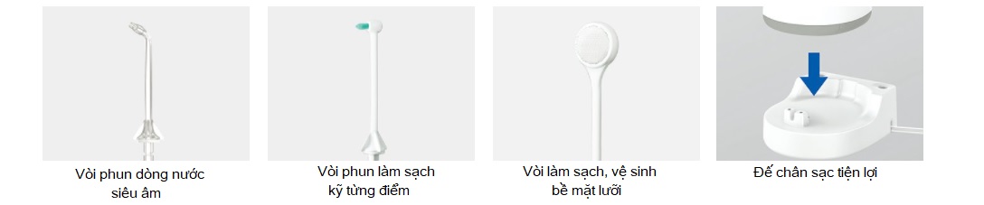 - Sản phẩm đầy đủ bao gồm: Body Máy,sạc, hộp, sách hướng dẫn kiêm bảo hành hãng, 3 loại đầu tăm. Kèm HDSD bằng tiếng việt do bên mình biên soạn.
