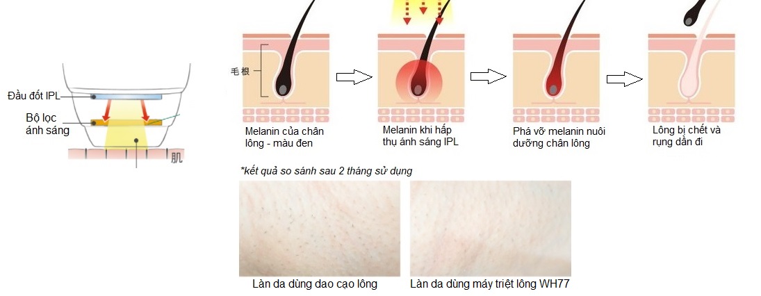 Một chiếc máy triệt lông cá nhân tốt phải được đánh giá tốt trên cả 3 tiêu chí: Hiệu quả triệt lông - Chăm sóc da sau triệt - An toàn thân thiện với cá nhân, với máy triệt Panasonic WH77 hiệu quả sẽ được kiểm chứng sau 1-2 tháng sử dụng máy, thu nhỏ lỗ chân lông, giúp da đều màu và sáng hơn, tiêu chuẩn nhật bản an toàn cho cá nhân sử dụng -->> Như vậy các bạn có thể hoàn toàn an tâm khi sử dụng em nó nhé.