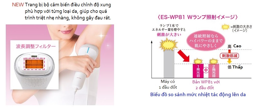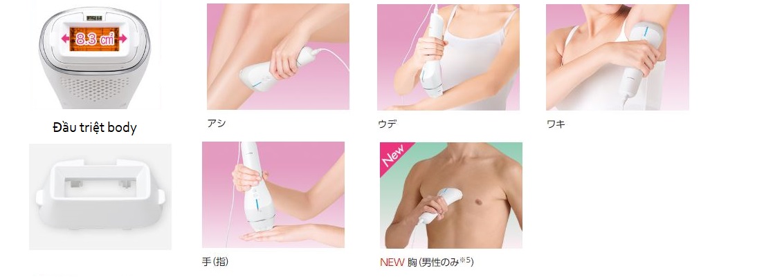 New: Đầu đốt của máy triệt lông Panasonic WP81 được tích hợp thêm công nghệ triệt lông ngực cho đàn ông, đây là công nghệ mới giúp cả gia đình có thể dùng chung 1 máy.