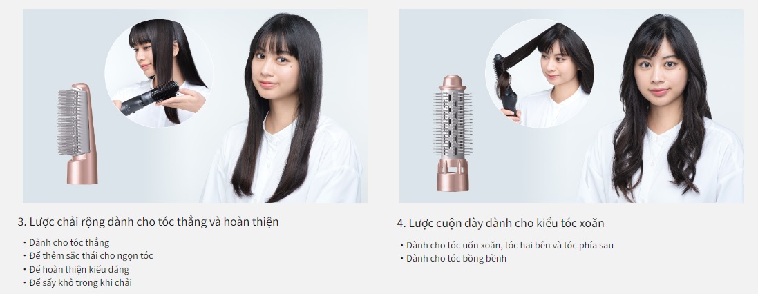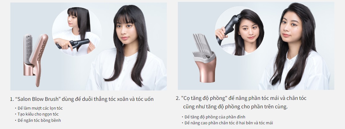 1.1 Duỗi thẳng tóc xoăn, tóc uốn, làm tăng độ phồng cho tóc...