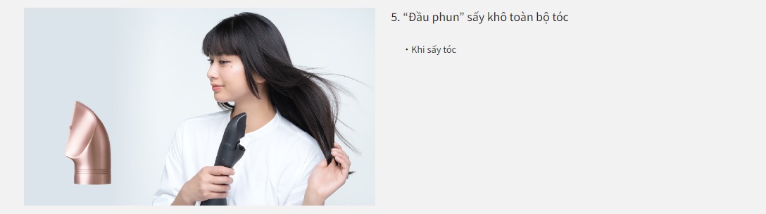 1.3: Đầu phun, sấy khô toàn bộ tóc