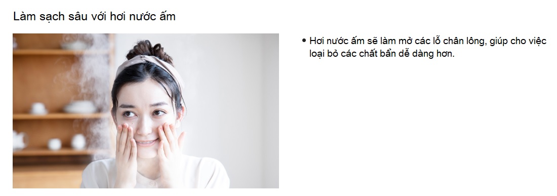 - Không những cấp ẩm 1 cách vượt trội mà hơi nước khi xông còn có tác dụng mở các lỗ chân lông giúp các chất bẩn sâu trong lỗ chân lông trôi theo những hạt hơi nước ra ngoài, cho làn da sạch sẽ, khỏe mạnh.