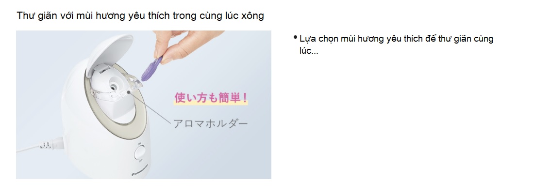 - Lượng hơi nước cùng với hương thơm từ các tinh dầu thơm, giúp cho chúng ta vừa xông hơi cho da mặt vừa thư giãn đầu óc với các mùi thơm từ các miếng tính dầu.