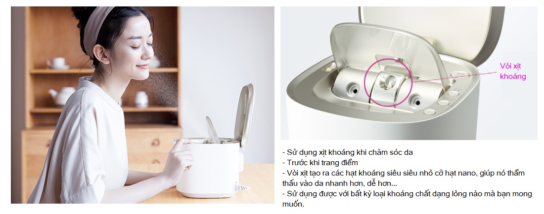 Với trang bị vòi xịt khoáng sẽ mang đến sự tiện dụng vô cùng cho các bạn hay xài các loại khoáng chất để dưỡng da, chức năng này có thể sử dụng bất cứ khi nào bạn muốn, sử dụng với mọi loại khoáng chất dạng lỏng hiện nay.