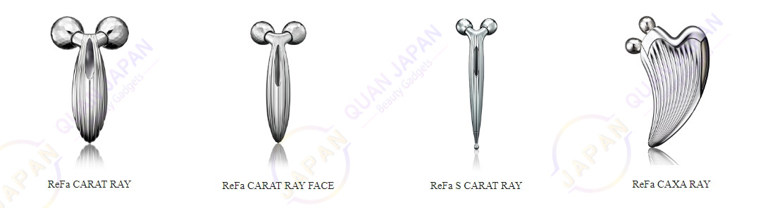 Refa Carat Ray: Đây là cây lăn có kích thước to nhất dùng cho cả mặt lẫn Body tuy nhiên do bi lăn to nên nó sẽ có hiệu quả nhất đối với các vùng có diện tích lớn trên mặt như: 2 bên cằm (tạo Vline), vùng má, vùng trán, vùng đầu. Các vùng có diện tích nhỏ như: vết nhăn trên mặt, khóe miệng, bọng mắt, rãnh mũi thì hiệu quả sẽ không bằng được các dòng cây lăn có kích thước bi nhỏ hơn, cây này còn có 1 tác dụng nữa mà gần đây chị em hay truyền tai nhau là sử dụng làm đồ chơi cá nhân.