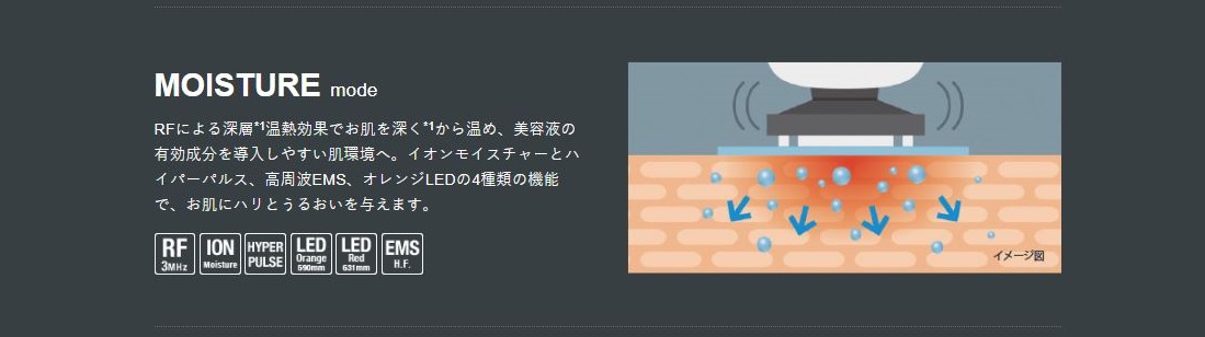 - Sóng nhiệt Radio tần số cao 3MHz: tác dụng của sóng RF là làm nóng, ấm da để làm sạch hay đẩy các tinh chất vào da hiệu quả hơn, ưu điểm của công nghệ này so với công nghệ làm nóng bằng mặt máy thông thường ( trên các dòng máy Hitachi hada crie hay Panasonic) là có thể làm ấm nhanh hơn, sâu hơn và làm ấm được vùng rộng hơn, với tần số 3MHz sẽ giúp nó làm ấm nóng nhanh hơn, sâu hơn so với các dòng máy thấp hơn của của hãng ( Yaman 10, Yaman 20 hay Yaman 11 tần số sóng RF là 1MHz).