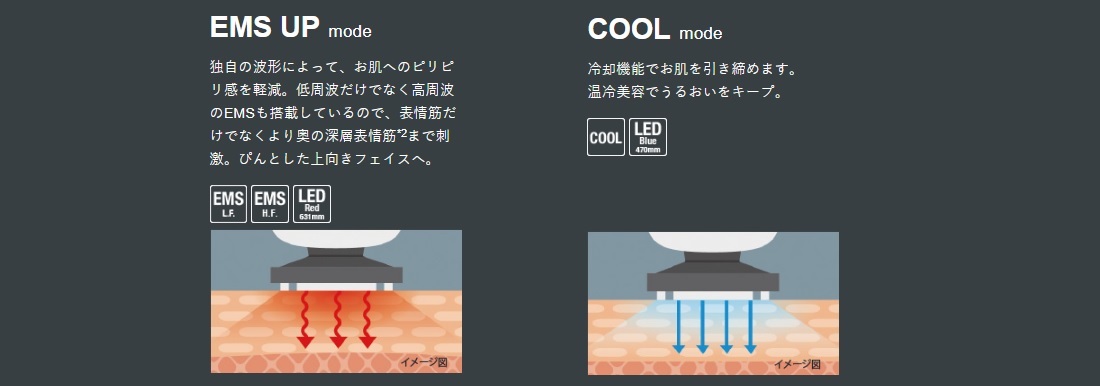 Kết hợp sóng nhiệt radio RF + Ion đẩy dưỡng + Hyper Pulse + Led đỏ + Led Vàng + sóng EMS đồng thời để đẩy các dưỡng chất thâm nhập sâu vào các lớp da bên trong.